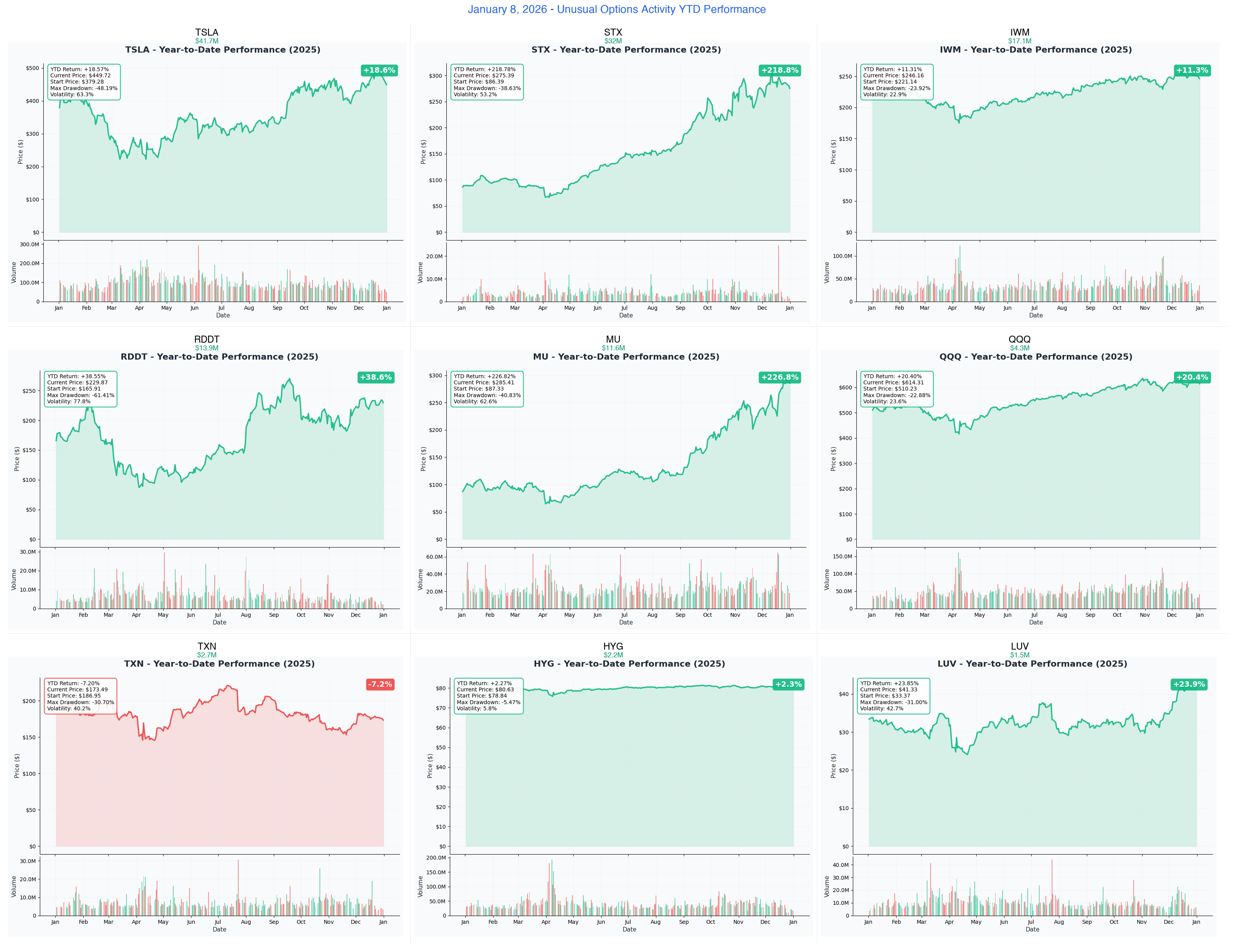 📅 8 de enero de 2026 | 🔥 Mayor flujo de capital: Salida de 41.7 millones de dólares por parte de TSLA; 32 millones de dólares por parte de STX; posición de put de 17.1 millones de dólares por parte de IWM | ⚠️ Temporada de resultados financieros, toma de ganancias y cobertura de riesgos son los aspectos principales.