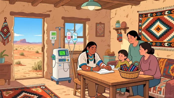 Los números cuentan una historia cruel. Los nativos americanos…Tiene 3.5 veces más probabilidades de desarrollar insuficiencia renal.Los indígenas del sudoeste de los Estados Unidos enfrentan una situación similar a la de los estadounidenses blancos. No se trata simplemente de una estadística; se trata de una crisis que tiene sus raíces en factores geográficos y de acceso. Para las comunidades indígenas del sudoeste, el camino hacia el tratamiento médico suele ser un viaje largo y difícil. Los pacientes deben recorrer horas de distancia para llegar al centro donde se realizan los tratamientos de diálisis. Este proceso les separa de sus familias, de sus tradiciones y del apoyo que brindan sus comunidades.