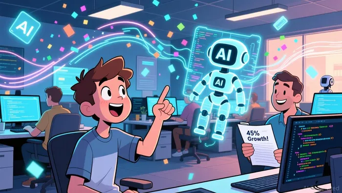 Este altiplano es un recurso estratégico. Cuando el núcleo de ejecución ya no sea un objetivo en movimiento, el capital y la innovación pueden fluir hacia la siguiente capa de infraestructura. La estabilidad de JavaScript como lenguaje universal para navegadores proporciona una base de bajo riesgo, lo que permite que los equipos inviertan con confianza en los sistemas construidos sobre esta base. La verdadera transformación ocurre en el siguiente nivel, impulsada por la inteligencia artificial. El impacto ya es medible.Casi el 29% del código fue generado por la IA para finales de 2025. Esto representa un aumento del 45% en comparación con el año anterior.Esto no se trata simplemente de una mayor velocidad en la codificación de códigos. Se trata de un cambio de paradigma en la forma en que se conciben y construyen los software. Los desarrolladores, cada vez más, actúan como arquitectos de los agentes de inteligencia artificial.