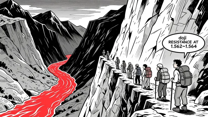 Price found support near 1.538 to 1.541, forming multiple consolidation patterns, including doji and bearish engulfing formations. Resistance appears to be forming at 1.562–1.564, where earlier bullish attempts stalled.