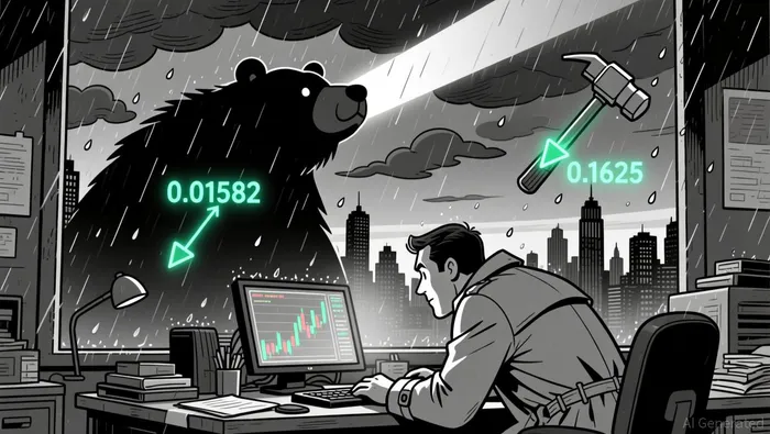Price action featured a bearish reversal pattern as TSTUSDTTST-- fell below 0.01615, forming a key resistance level at 0.01631 and support at 0.01601. A large bearish candle at 07:30 ET confirmed the breakdown, with a high of 0.01603 and a close at 0.01582. A potential bullish hammer appeared near 0.01595, suggesting short-term buyers may re-enter the market.