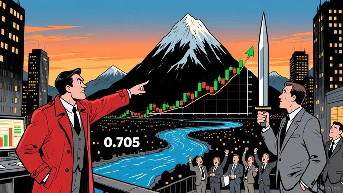 Price carved a 24-hour range between 0.694 and 0.718, with a key pivot at 0.703 where a bullish engulfing pattern emerged. The 0.708–0.713 range acted as a contested resistance, eventually broken twice, suggesting growing short-term buying interest. A doji appeared near 0.708, signaling indecision and potential consolidation ahead.