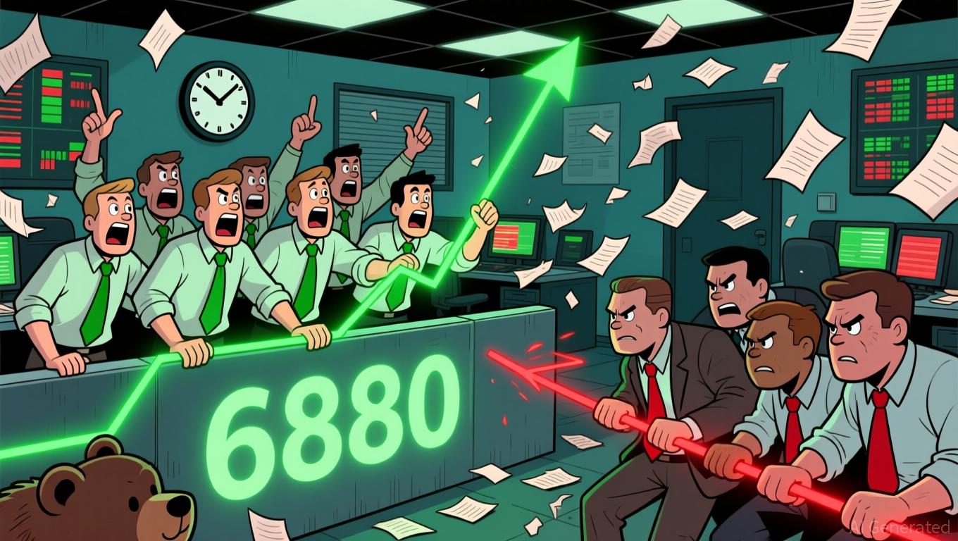 Se trata de un nivel que ahora se ha convertido en un punto de soporte. Este rebote sugiere que existe una demanda subyacente que intenta evitar un retracción aún más profundo. Para los vendedores, el objetivo inmediato es que el precio caiga por debajo de los 6800. Si el precio cae por debajo de ese nivel, esto provocará una oleada de liquidaciones a corto plazo y confirmará una divergencia bajista. Probablemente, esto hará que el índice vuelva a la zona de soporte de los 6800. Por otro lado, si el precio supera el máximo reciente, eso abriría la puerta para probar el nivel psicológico de los 7000, lo que indicaría la continuación de la tendencia alcista.