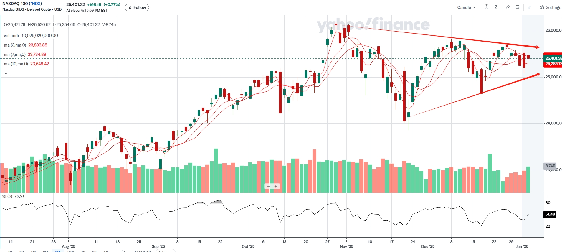 Las acciones abrieron el nuevo año sobre una base firme, y el apetito por el riesgo regresó rápidamente cuando los operadores regresaron de las vacaciones. El Promedio Industrial Dow Jones alcanzó un nuevo récord, mientras que el S&P 500 y el Nasdaq 100 avanzaron hacia estructuras que se parecen cada vez más a los patrones alcistas de las primeras etapas. Las expectativas de un ciclo continuo de relajación siguen siendo el impulsor macro dominante, y la reacción del mercado al reciente riesgo principal relacionado con Venezuela ha sido notablemente moderada. Con el escaso posicionamiento de fin de año ahora despejando y la participación normalizándose gradualmente, la fuerte divergencia observada en las materias primas a fines del año pasado ha comenzado a revertirse, preparando el escenario para un entorno más constructivo pero aún táctico a medida que se desarrolla enero.