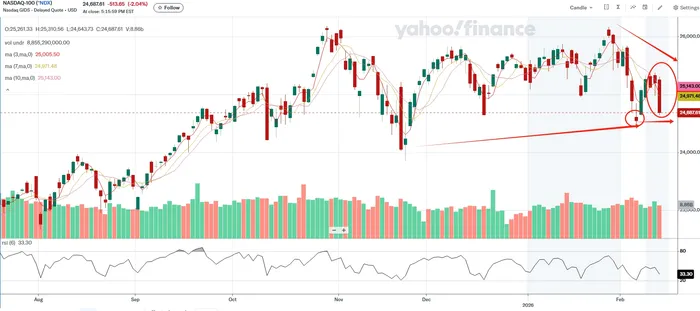 El análisis técnico es lo primero que se debe considerar. El proceso de mezclado automático por parte de la IA ha afectado especialmente a las acciones de las empresas de tecnología, convirtiendo al Nasdaq 100 en el principal objetivo de los impactos negativos. La caída del jueves ha llevado al índice de tecnología a una posición más vulnerable. Ahora, este índice está probando el nivel mínimo del 5 de febrero. Si ese nivel de soporte se rompe, la presión de venta podría intensificarse, ya que el pánico podría superar cualquier posicionamiento racional. El intento de recuperación reciente ya ha formado un patrón de baja a corto plazo. Si se produce un nuevo mínimo, el riesgo de caída aumentará significativamente. Los indicadores de momentum refuerzan esta advertencia. Los indicadores técnicos como MA(3), MA(7) y MA(10) han mostrado signos de deterioro a corto plazo. Si estas condiciones técnicas se combinan con un rompimiento del nivel de soporte, el pesimismo podría convertirse en el principal obstáculo a corto plazo.