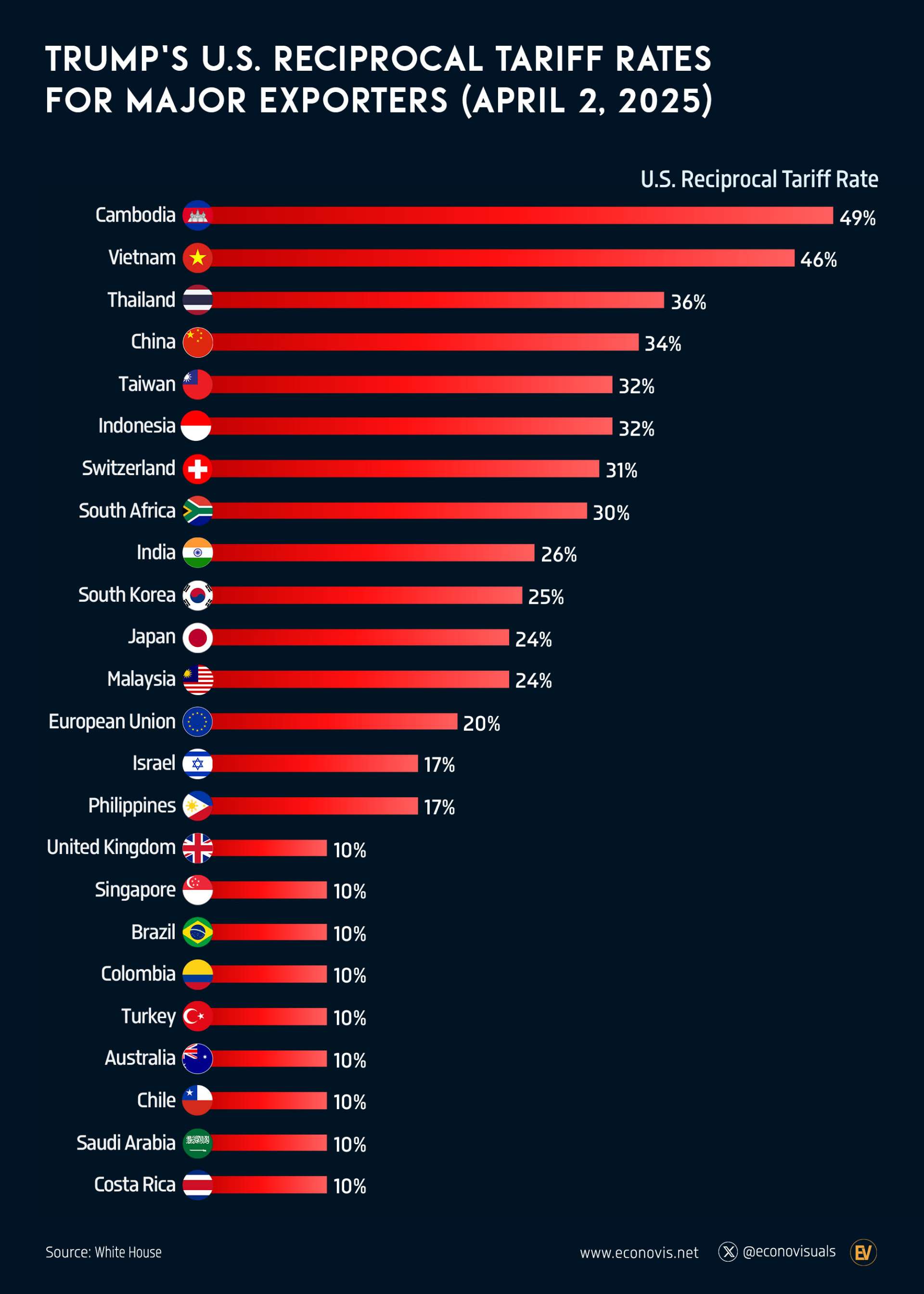 South Korea & Japan: ~24% Tariffs