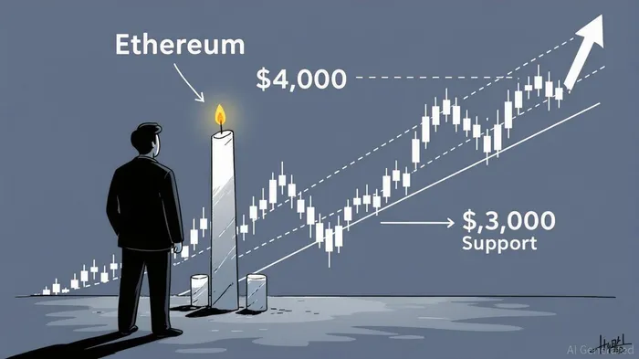 Ethereum is currently forming a 4-year falling wedge on its weekly chart, with analysts like Daan and Titan of Crypto highlighting its potential to break out toward $4,000–$6,700 [1]. This pattern coincides with Ethereum’s institutional adoption surge, driven by the launch of spot ETFs from BlackRockBLK-- and Fidelity, which have amassed over $80 billion in assets under management by Q2 2025 [2]. Ethereum’s post-merge upgrades—enhancing scalability and reducing gas fees—have further solidified its appeal for institutional investors and developers [3]. On-chain data, including a record-low Exchange Supply Ratio of 0.13, suggests reduced selling pressure and heightened accumulation by large holders [4].