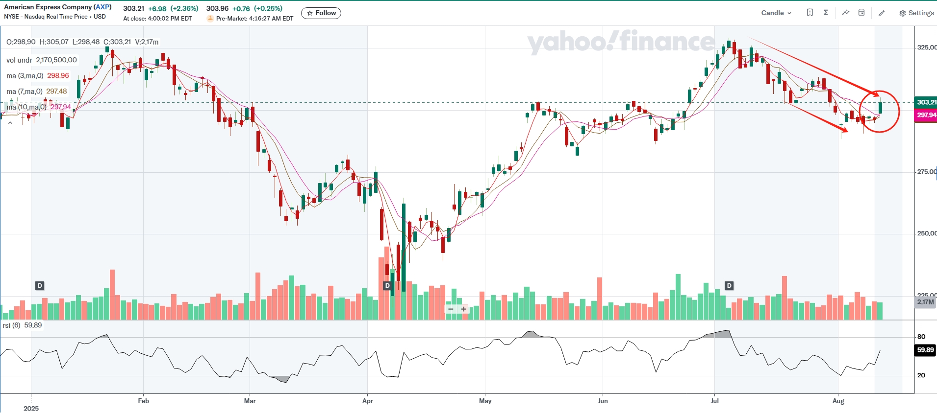 , have been pressured by the rise of stablecoins, which promise cheaper and more efficient payment processing. While remains in a downward trend, a recent bounce has started to challenge that trajectory, with MA (3, 7) turning upward—though confirmation is still needed. The company’s long-standing loyalty programs tied to travel and dining continue to offer resilience against the stablecoin challenge. Moreover, the recovery in the airline sector could provide an additional tailwind for future growth.