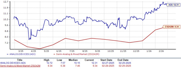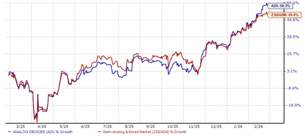 Shares of ADI have gained 58.3% in the past one year compared with the Semiconductor - Analog and Mixed industry’s growth of 49.4%.