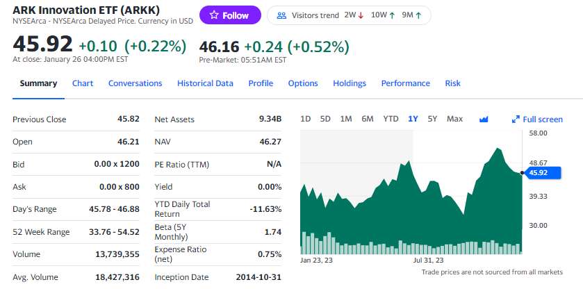 However, since the beginning of this year, due to drops in key holdings like Tesla, ARKK has fallen by over 10% since the start of January.
