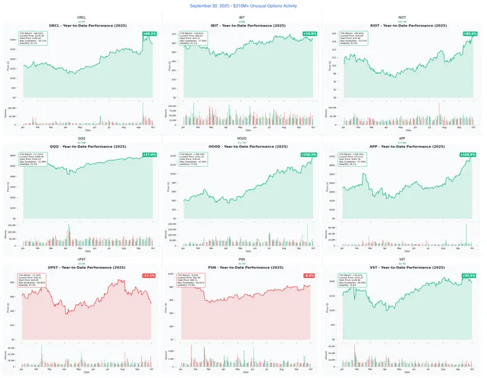 We just witnessed $210+ MILLION in massive institutional options activity across 9 tickers on the last trading day of Q3 - featuring Oracle's $57M call dump signaling AI rally exit, BlackRock's $39M BitcoinBTC-- ETF bullish synthetic, and QQQ's $31.8M tech sweep ahead of earnings season.