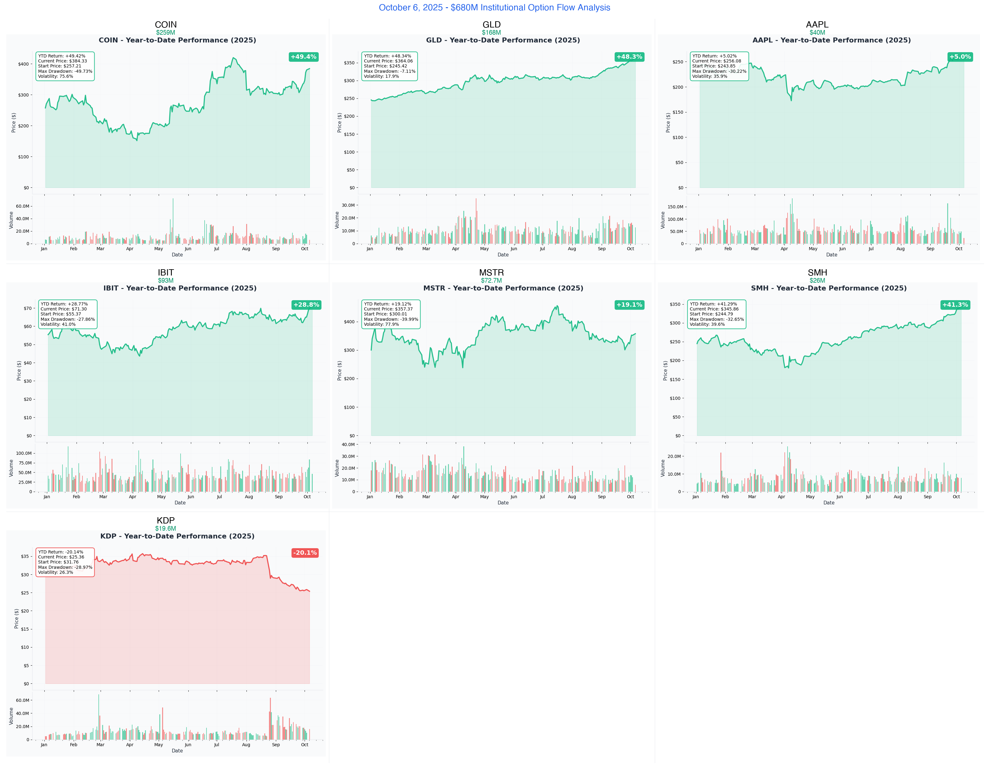 October 6, 2025 | š„ HISTORIC DAY: Coinbase's $259M Monster + Apple's $101M Bull/Bear War + Gold's $168M Surge + MSTR's $72.7M Bitcoin Proxy | ā ļø Total $741M+ Institutional Rebalancing Into Digital Assets & Tech