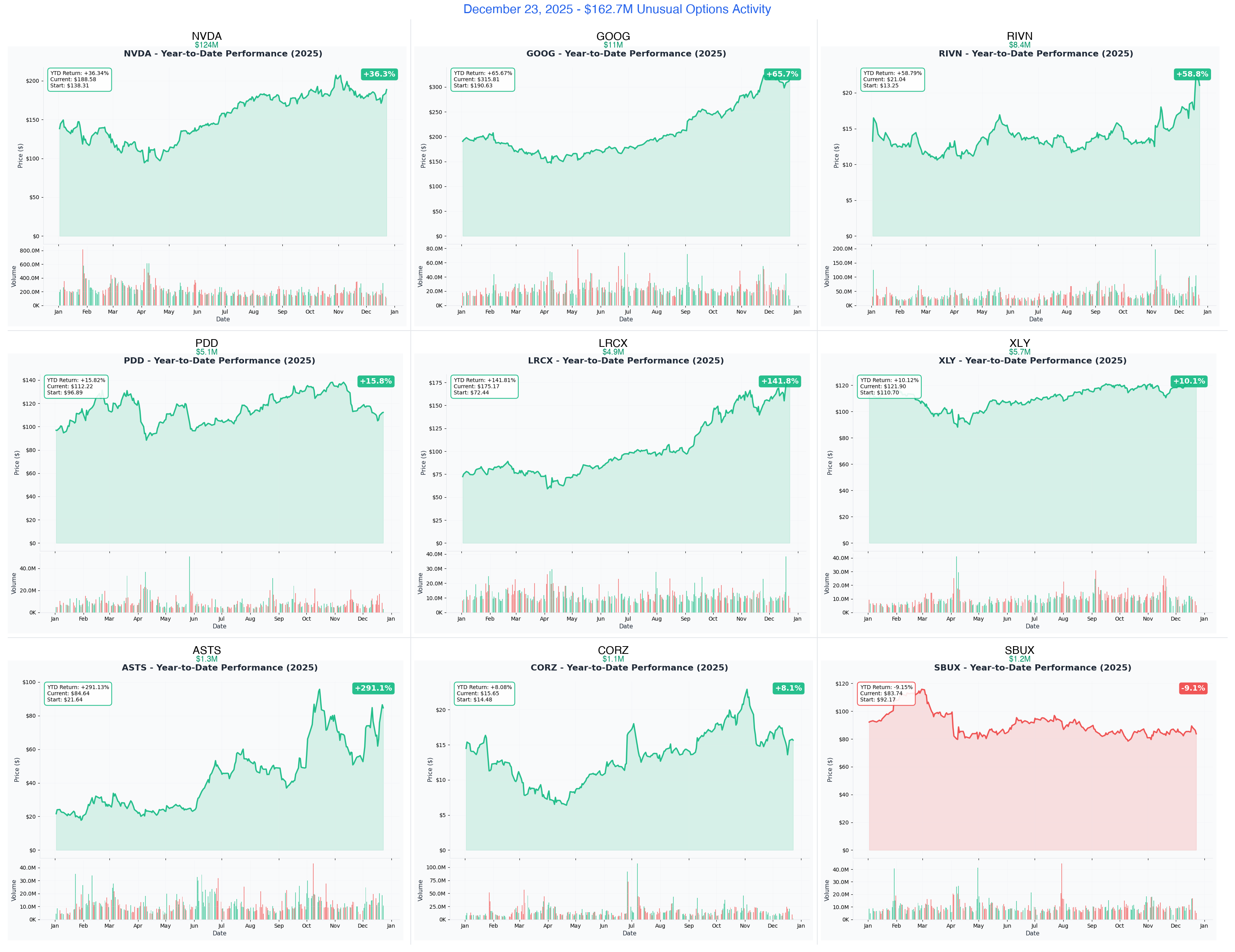December 23, 2025 | NVDA's Monster $124M Call Load + GOOG's $11M Bearish Protection + RIVN's $8.4M Deep ITM Conviction | Tech Giants, EV, & Consumer Plays Dominate Holiday Week