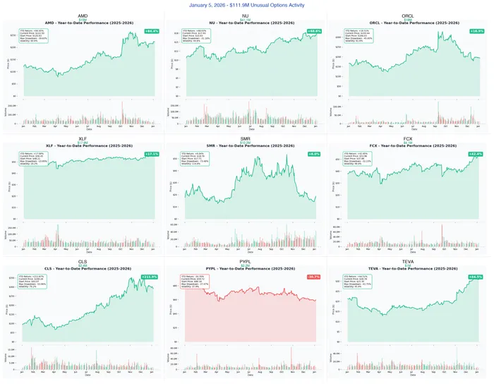 Welcome to today's Option Flow Digest! We tracked over $111 million in institutional options activity, featuring AMD's CES keynote plays, a massive $41M complex strategy on NU HoldingsNU--, and contrarian bets on nuclear energy. Let's break down what the smart money is positioning for.