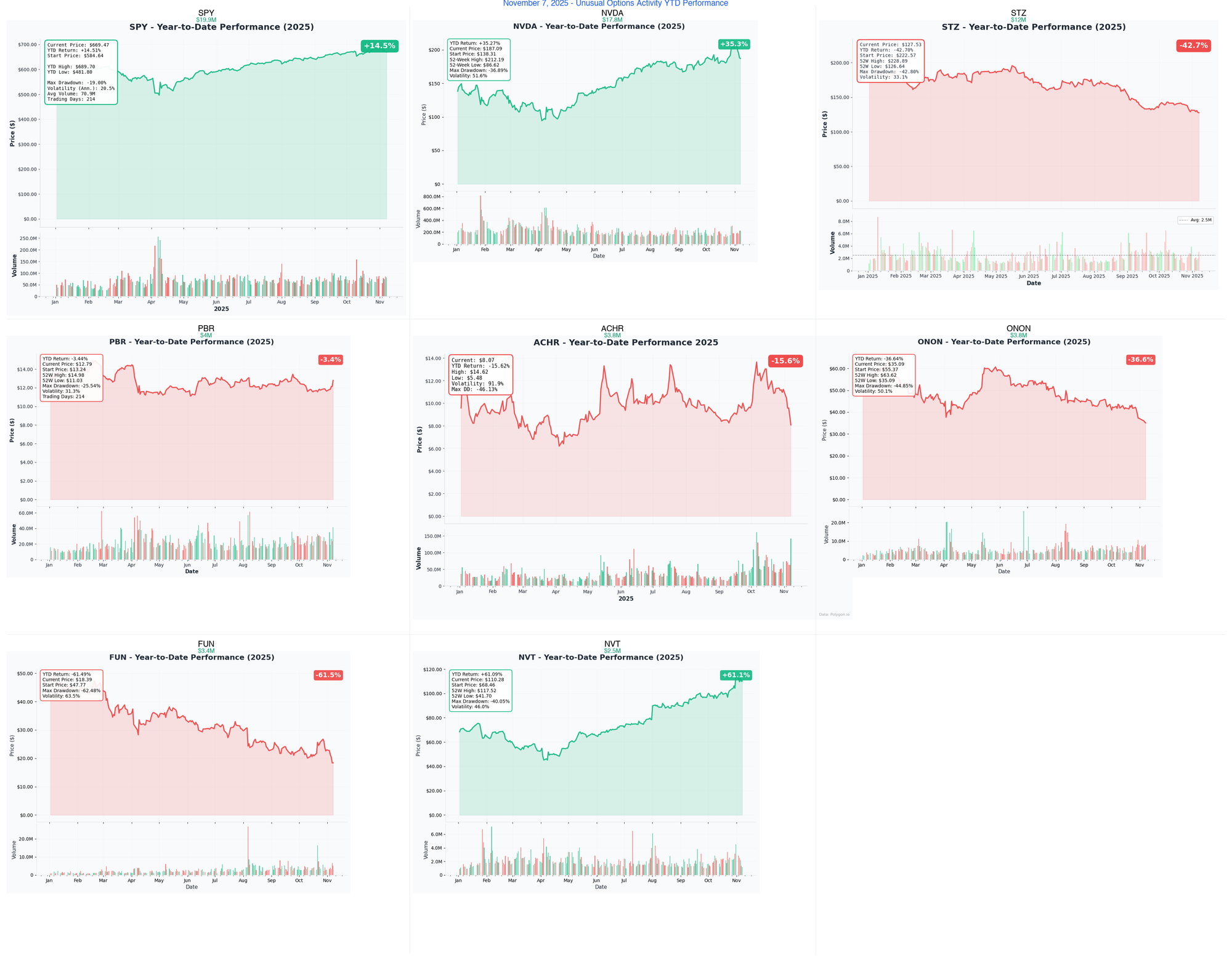November 7th's $165M in unusual option activity reveals a market at a crossroads. While retail investors might see individual trades as isolated signals, the collective message is clear: smart money is simultaneously taking profits from big winners (NVDA), hedging tail risks (SPY, STZ, FUN), and rotating into specific growth catalysts (ACHR, NVT, ONON, PBR).