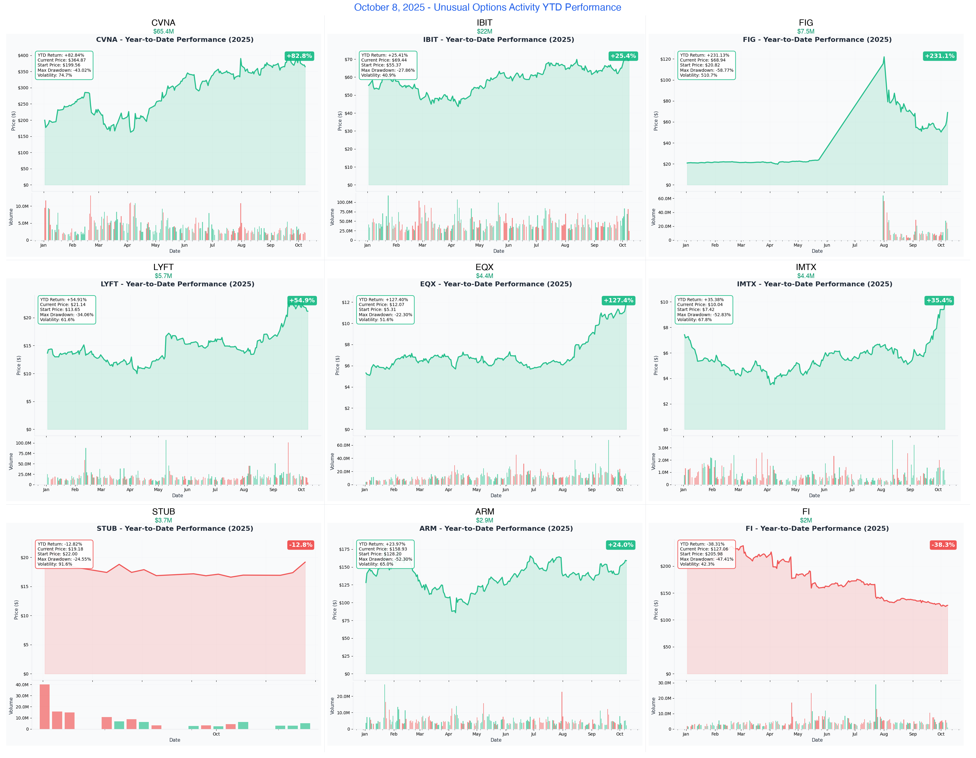 Never risk more than allocated %Ā - YOLO (1-2%), Swing (3-5%), Premium (portfolio-based), Entry (< 1%)Set stop lossesĀ at 30-50% of option premium paid or gamma support breakdownTake profits fastĀ - 50-100% gains on options, don't hold for 500% home runsWatch time decayĀ - October positions losing value rapidly as expiration approachesRespect earningsĀ - Binary events can move stocks 20%+ overnight either directionKnow your catalyst datesĀ - FIG expires Oct 10, earnings gauntlet Oct 28-Nov 17Institutional Warning:Ā Today's unusual flow shows smart money is EXITING (CVNA $65M), not just entering. When institutions take profits after huge runs, retail should pay attention. Don't blindly follow into trades - understand the thesis and your risk tolerance.