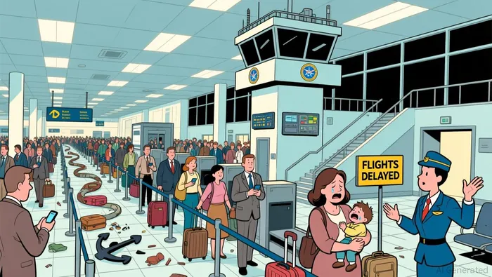 The system is now in a state of high-stress, low-capacity operation. Passengers face long waits and unpredictable schedules, while airlines scramble to reaccommodate disrupted travelers. This creates a costly feedback loop of refunds, crew management issues, and lost revenue, all flowing from the initial shock of unpaid workers and mandated flight cuts.