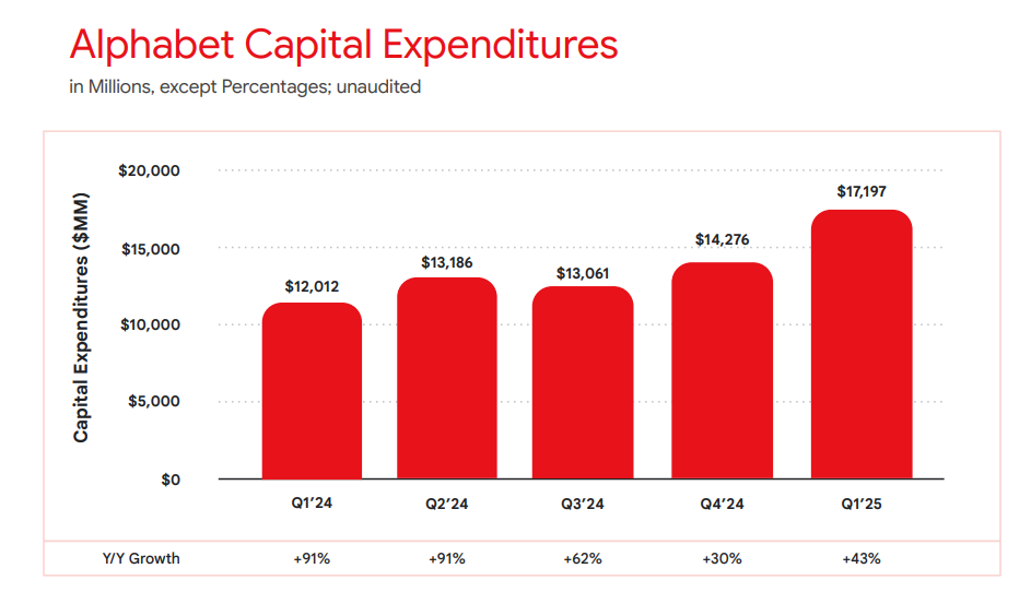 Alphabet kicked off earnings season for the mega-cap tech cohort with a confident strideLRN--, delivering better-than-expected results across key performance metrics and boosting shareholder returns. In the face of macroeconomic uncertainty and regulatory scrutiny, the GoogleGOOG-- parent posted adjusted earnings per share (EPS) of $2.81—well ahead of the $2.01 consensus and up nearly 49% year over year. Revenue for the quarter landed at $90.23 billion, topping expectations of $89.1 billion and growing 12% annually. Capital Expenditures did shoot up 43% to $17 billion in the quarter. Investors will want to see if GOOGL reiterates its $75 billion CapEx target for 2025 on the call. Shares climbed over 4% in after-hours trading as the company’s ad business and cloud momentum provided reassurance to investors.