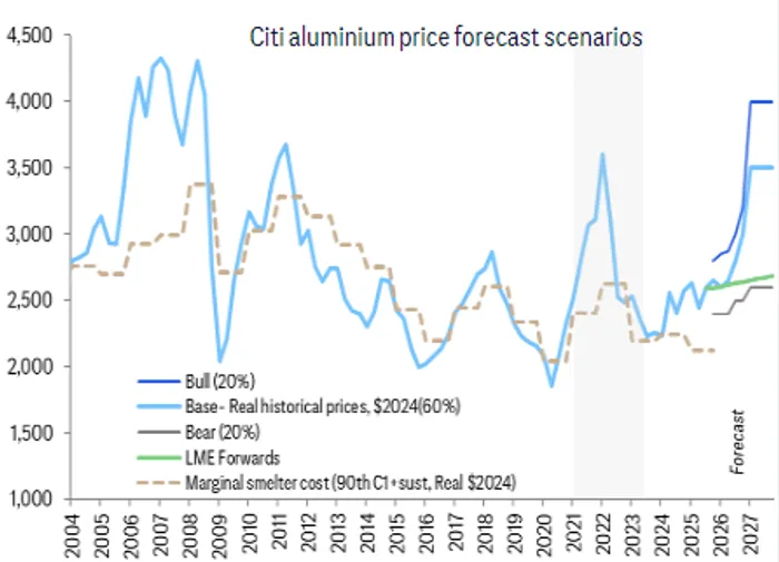 Citi analysts Wenyu Yao, Maximilian Layton, and Shreyas Madabushi wrote in a September 15 report that they are structurally bullish on aluminum. At the current price of $2,500 per ton, the market could face an unsustainable deficit over the next five years. They estimate aluminum prices need to rise above $3,000 per ton to incentivize the necessary supply growth.