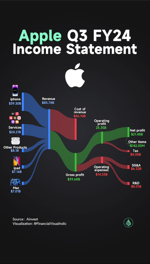 Apple Inc.$AAPL(AAPL)AAPL-- recently released its financial results for the third quarter of fiscal year 2024, once again stunning Wall Street with impressive numbers. The company achieved revenue of $85.78 billion, up 5% year-over-year, surpassing the market expectation of $84.55 billion. Earnings per share (EPS) came in at $1.40, also exceeding the forecast of $1.35 $AAPL(AAPL)AAPL--.