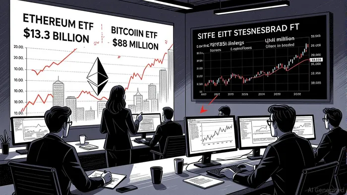 The regulatory landscape has further accelerated this shift. The CLARITY Act’s reclassification of Ethereum as a utility token in 2025 enabled SEC-approved in-kind creation and redemption mechanisms for Ethereum ETFs, reducing counterparty risk and enhancing liquidity [3]. This clarity has driven a 60/30/10 institutional allocation model, with 60% of portfolios allocated to Ethereum-based products, 30% to BitcoinBTC--, and 10% to altcoins [4]. By Q2 2025, Ethereum ETFs had attracted $13.3 billion in inflows, dwarfing Bitcoin ETFs’ $88 million [3].