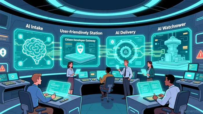 ASGN's AI Factory is an end-to-end platform that streamlines the journey from AI concept to production. It tackles three critical pain points: fragmented tools, governance complexity, and resource constraints. The framework is structured around four components: AI Intake & Project Management, which prioritizes high-impact use cases; Citizen Developer Gateway, enabling non-experts to build AI applications safely; AI Delivery Engine, automating data gathering and testing; and