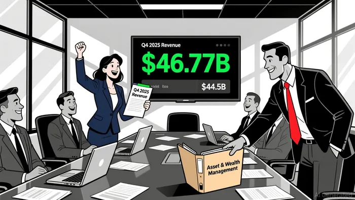JPMorgan delivered a standout Q4 2025 performance, with earnings per share (EPS) of $5.23, surpassing the $4.86 forecast. Revenue of $46.77 billion also exceeded expectations, driven by robust asset and wealth management growth, where assets under management surged 18% annually to $4.8 trillion. However, a one-time charge related to its Apple Card loan portfolio acquisition from Goldman Sachs temporarily depressed net income to $13.03 billion.