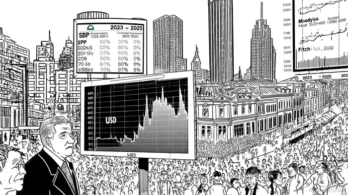 Ecuador's public debt-to-GDP ratio stood at 57% in 2022, with limited fiscal flexibility and high debt service costs constraining policy options [2]. Political uncertainty has exacerbated these challenges. For instance, the 2024 impeachment crisis led to a sharp rise in the sovereign risk premium, as investors feared a shift toward fiscally expansionary policies [2]. By Q3 2025, however, the Cbonds Ecuador Sovereign USD YTM Index reported a yield of 11.82%, reflecting a 41% return for investors amid improved political stability under Noboa [3]. This improvement, however, masks deeper vulnerabilities. Credit ratings from S&P, Moody'sMCO--, and Fitch remain in speculative territory, with S&P's “B-” rating carrying a negative outlook and Fitch's “CCC+” signaling potential downgrades if fiscal discipline falters [2][4].