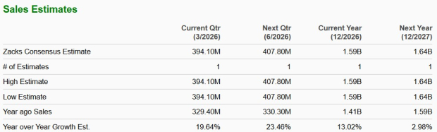 The Zacks Consensus Estimate for revenues for 2026 stands at $1.59 million, suggesting year-over-year growth of 13%. The estimate for 2027 is at $1.64 million, indicating 3% growth.
