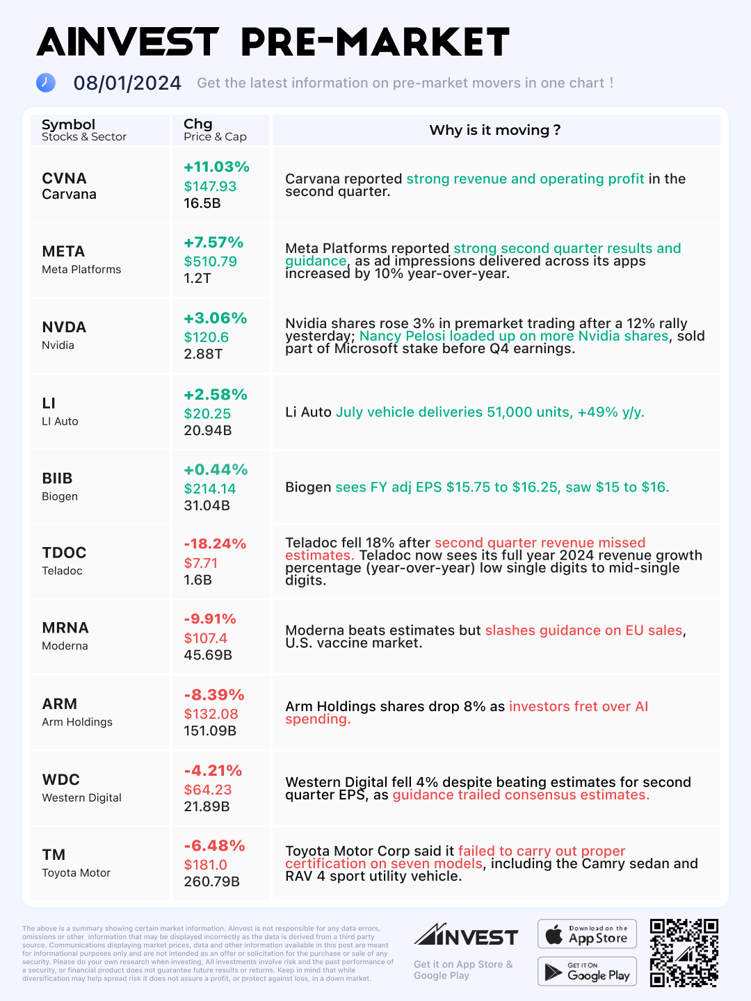 Aug. 01 Pre-market Movers Board: Meta shares rise 7.5% on revenue and earnings beat