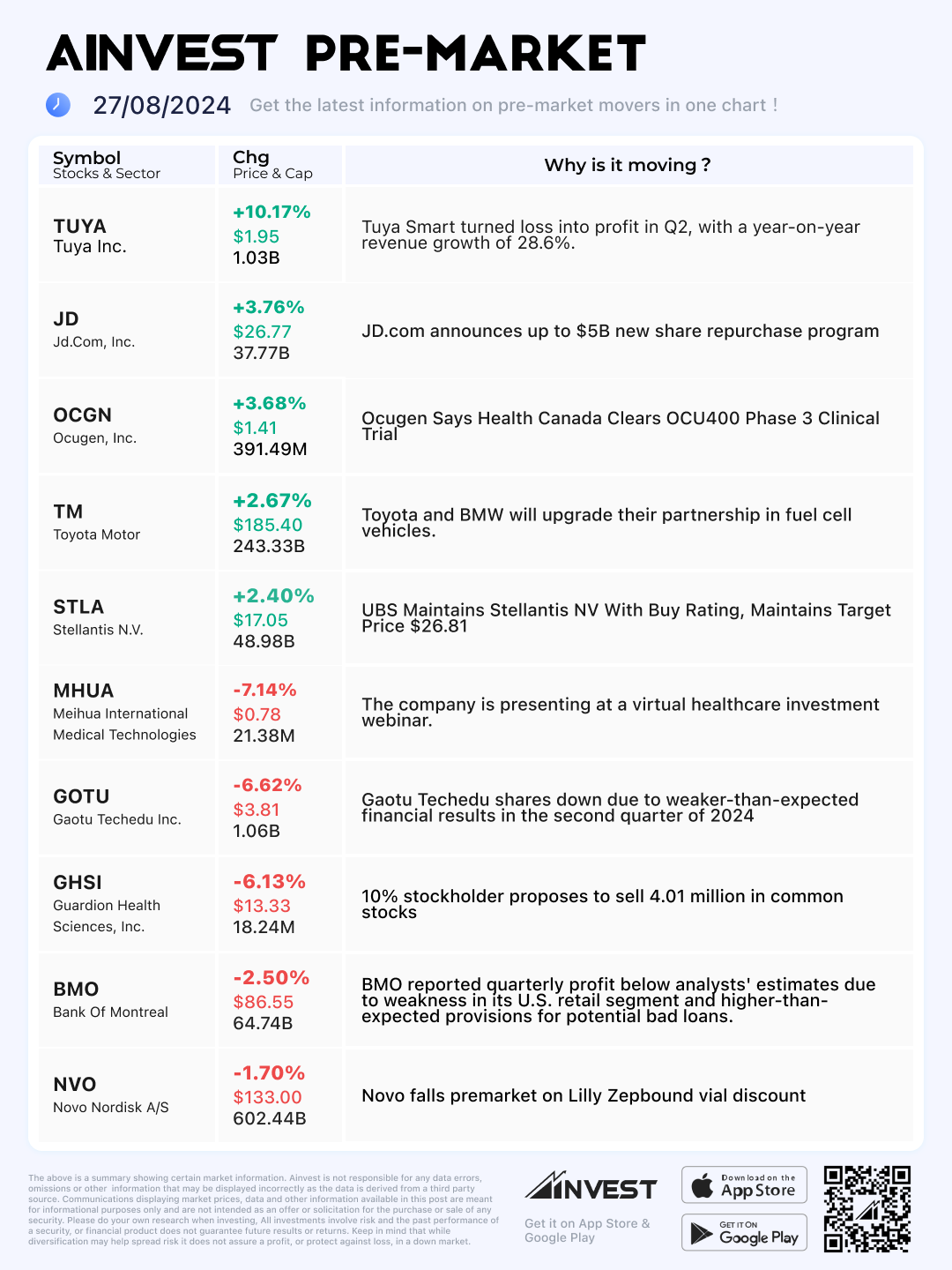 Aug. 27 Pre-market Movers Board: Novo falls shares down premarket after Lilly's Zepbound vial discount