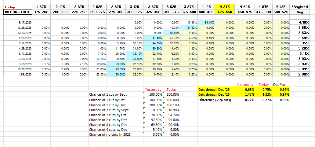 After the data release, markets priced in three consecutive 25 basis point rate cuts by the Federal Reserve at its September, October, and December meetings.