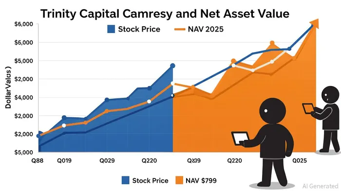 Trinity Capital’s valuation metrics further underscore its appeal. As of Q2 2025, the stock traded at a price-to-NAV (P/NAV) ratio of 1.22x, a premium to the sector average of 0.96x [1]. This premium, while seemingly counterintuitive in a down sector, is justified by TRIN’s strong operational metrics. Its net asset value per share rose 1.7% quarter-over-quarter to $13.27, a 35.8% increase year-over-year [3]. Meanwhile, the company’s leverage ratio stands at 1.15, and its asset coverage ratio of 194% highlights its financial stability [2].