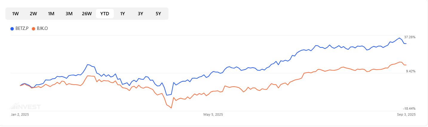 marketing could pressure customer acquisition spend and sentiment; macro slowdowns can hit discretionary gaming budgets.While BETZ has delivered stronger returns, BJK provides a diversification buffer with its mix of traditional casino equities. For retail investors, sector ETFs offer liquid, diversified entry points into gaming’s transformation—although risk tolerance is vital. Digital leaders like DraftKings and Flutter provide the most upside, while established casino operators offer steadier but slower growth.