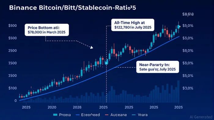 Binance’s Bitcoin/stablecoin ratio—a metric comparing the exchange’s BTC reserves to stablecoin reserves—has emerged as a critical gauge of market sentiment. When the ratio nears parity (1), it historically signals a potential inflection pointIPCX-- in Bitcoin’s price trajectory. For instance, in March 2025, the ratio approached 1 as BitcoinBTC-- plummeted to $78,000, a level that preceded its rebound to an all-time high of $123,000 [2]. Similarly, in July 2025, the ratio surged above 1 during Bitcoin’s rally past $120,000, reflecting heightened demand for BTC against stablecoins amid bullish market conditions [1].