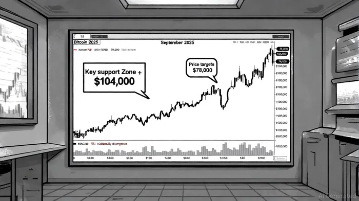 Bitcoin's technical outlook in September 2025 has turned decisively bearish, with the asset breaking below the $112,000 support level that had held since early July. As of September 19, BitcoinBTC-- trades at $108,253, reflecting a 6.5% decline in August and a 0.49% drop in a single day [4]. Analysts such as Peter Brandt have identified a head-and-shoulders pattern, projecting a potential drop to $78,000 if the $105,000 support fails [1]. The critical support zone between $100,000 and $104,000—reinforced by the 200-day EMA and 50% Fibonacci retracement—remains a key battleground for buyers [1].