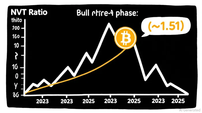 The NVT ratio, a critical metric for evaluating Bitcoin's valuation relative to its transactional utility, has crossed into a “golden-cross” range of ~1.51. This level historically marks a balance between speculative fervor and intrinsic value, indicating that Bitcoin's price is increasingly supported by real-world usage rather than short-term trading activity [1]. For context, during the 2017 and 2021 bull cycles, the NVT ratio typically bottomed near 1.2 before surging to 3.0+ as speculative demand outpaced utility. The current 1.51 level suggests a healthier equilibrium, with transaction volumes reflecting genuine adoption rather than hype [3].