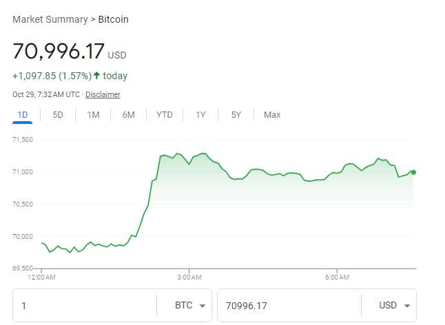 According to Coindesk data, the price of Bitcoin is currently up 1.57% at $70,996.17, and the election outcome is widely seen as a key catalyst for the future rise in Bitcoin prices.