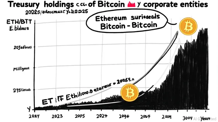 Bitcoin mining firms are no longer content with merely holding Bitcoin. Companies like BitMine Immersion Technologies have pivoted aggressively to Ethereum, amassing 2.07 million ETH as of September 2025—valued at $9 billion and making it the largest Ethereum treasury globally [3]. This shift is emblematic of a broader trend: 69 entities now hold over 4.1 million ETH in treasuries, totaling $17.6 billion in value [4].