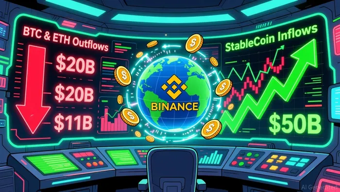 Binance's strategic moves align with a broader market trend of capital preservation. The exchange's stablecoin surge is interpreted as a "dry powder" buildup, with analysts noting that historically stablecoin inflows have preceded Bitcoin's bullish phases, as seen in the 2021 bull market and the 2024–2025 recovery. Meanwhile, the outflow of BTC and ETHETH-- may indicate investors moving assets to cold storage or alternative platforms, reducing immediate selling pressure.