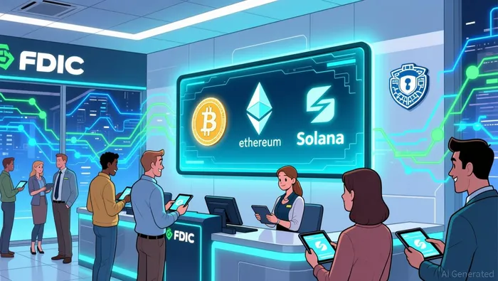 The U.S. financial landscape is undergoing a seismic shift as traditional banks and regulators accelerate integration of cryptocurrencies into mainstream finance. SoFi TechnologiesSOFI--, Inc. (NASDAQ: SOFI) has emerged at the forefront, becoming the first FDIC-insured, nationally chartered bank to launch consumer crypto trading via its app, according to a Bitget report. This move, which allows users to trade BitcoinBTC--, EthereumETH--, and SolanaSOL-- directly from FDIC-protected accounts, reflects a broader industry pivot toward regulated digital asset services, as reported in a Futunn article. Anthony Noto, SoFi's CEO, emphasized the milestone, stating it positions the company to "transform the financial sector by making transactions more efficient, cost-effective, and secure," as noted in the Bitget report.