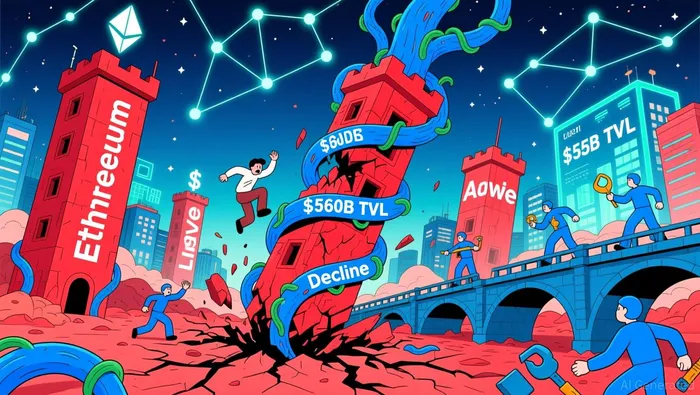 The $55 billion drop in DeFi TVL during November 2025 was driven primarily by asset price depreciation rather than user outflows. EthereumETH--, AaveAAVE-- (AAVE), and Lido (LDO) fell by 38%, 40%, and 50%, respectively, dragging down TVL metrics according to analysis. However, this decline masked a critical nuance: users retained their positions, and onchain activity surged. DEXs processed $360 billion in trades between November 1 and 26, surpassing June's full-month volume of $332 billion. This suggests that DeFi's infrastructure remained functional even as token values plummeted.