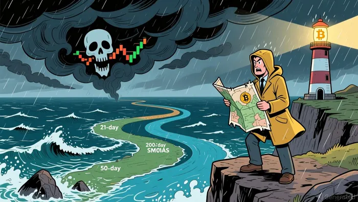 Bitcoin's technical landscape in late 2025 is characterized by conflicting signals. The 21-day SMA, a short-term trend indicator, currently signals a bearish bias, while the 50-day SMA at and the 200-day SMA at suggest a broader bearish structure. A "" formed in November 2025, where the 50-day SMA crossed below the 200-day SMA, historically signals prolonged downturns. However, the 100-week EMA is nearing a critical crossover, a pattern that has historically preceded corrections.