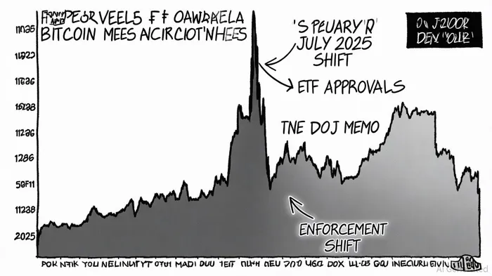 Institutional confidence in Bitcoin has surged following the DOJ's enforcement shift, as evidenced by on-chain accumulation patterns. Over 20,000 wallets now control nearly 10% of the total Bitcoin supply, with 622 new wallets holding at least 10 BTC emerging in a single month, according to an InTheNearFuture breakdown. This trend reflects a departure from retail-driven accumulation in previous bull cycles, signaling a maturing market dominated by institutional actors. The approval of spot Bitcoin ETFs in early 2024, which attracted over $20 billion in net inflows by mid-2025, further catalyzed institutional adoption, the InTheNearFuture breakdown noted. On-chain data from Glassnode shows a surge in wallet addresses holding over 1,000 BTC, underscoring whale and institutional accumulation, as also discussed in the InTheNearFuture breakdown.