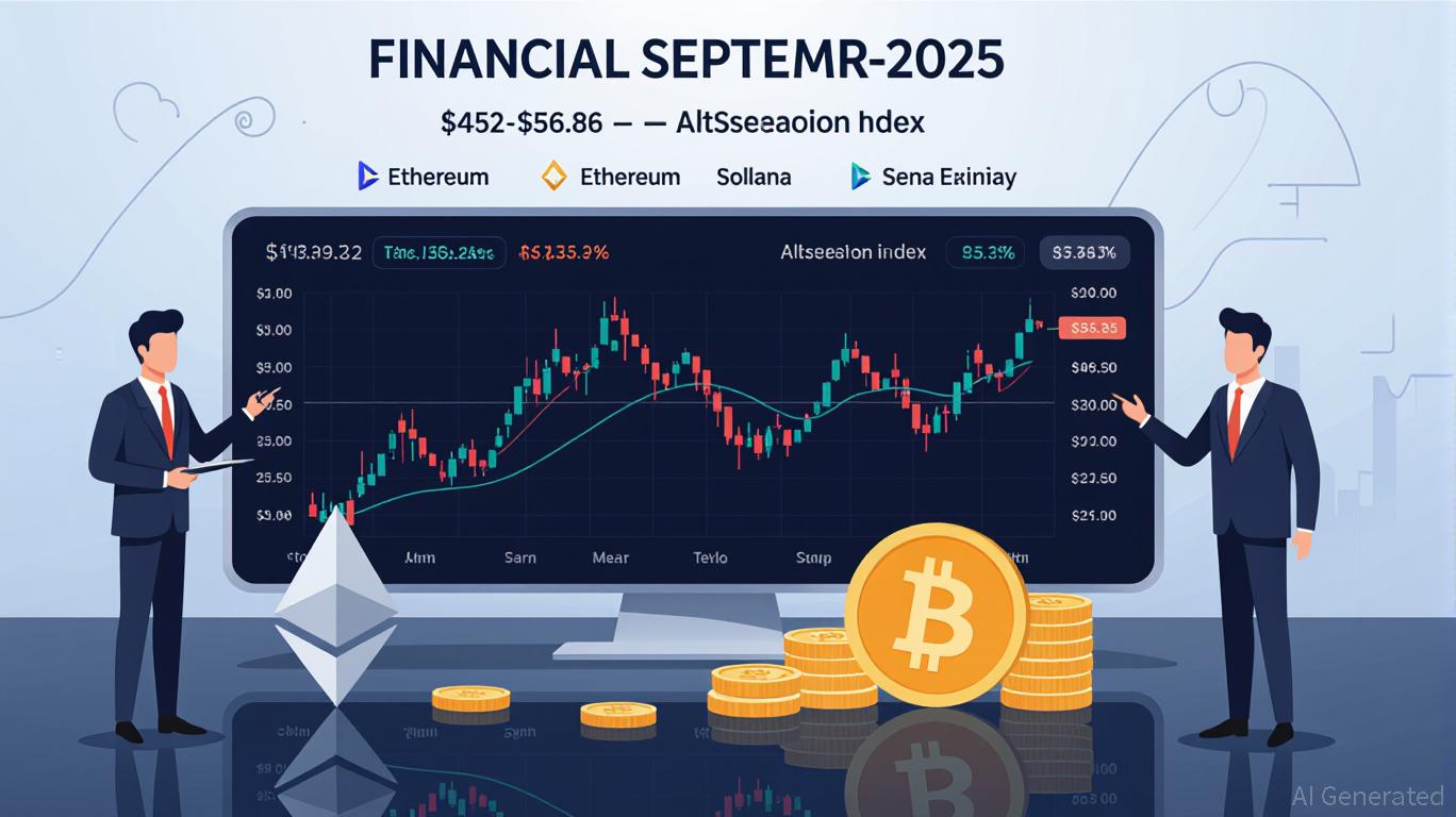 The Altseason Index reached 63 in September 2025, indicating improving altcoin breadth but not yet confirming a full-blown altseason [5]. This aligns with Bitcoin’s declining dominance, which dropped from 65% in May to 59% in August 2025, as capital flows into altcoins [2]. Ethereum has emerged as a focal point for institutional capital, with SEC-approved ETFs attracting $4 billion in Q3 2025 inflows and a market cap of $550 billion [1]. Solana, meanwhile, surged above $200 due to DeFi traction and partnerships like