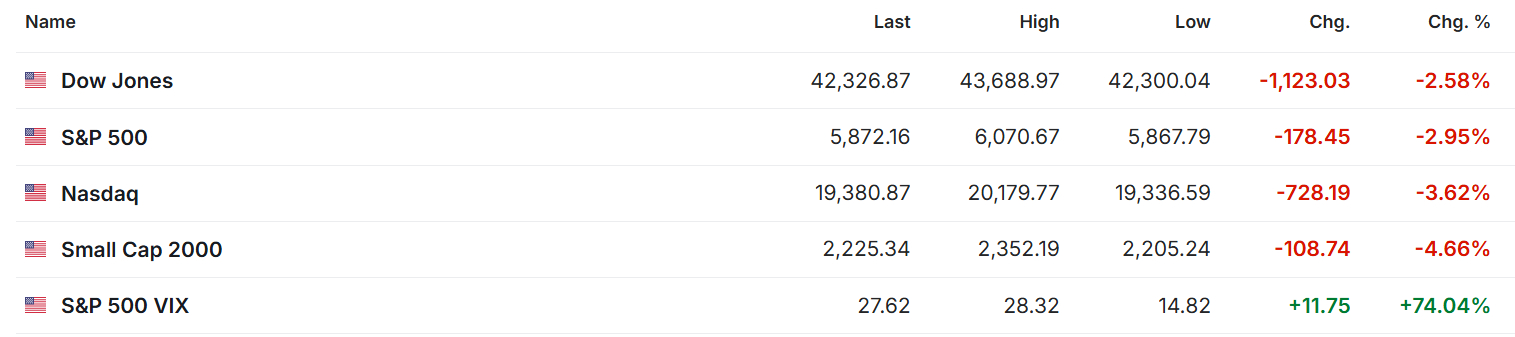 The sell-off extended to precious metals, with gold and silver both experiencing sharp declines. Gold tested the $2600 mark, while silver fell by more than 3%.