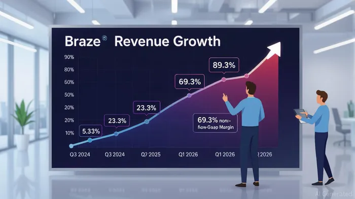The company’s operational efficiency has also improved markedly. In Q1 FY2026, BrazeBRZE-- reported a non-GAAP gross margin of 69.3%, up from 67.9% in the prior year quarter, driven by cost optimization and personnel efficiencies [1]. More notably, non-GAAP operating income turned positive at $3 million (2% of revenue), a stark contrast to the $10 million loss (-7% of revenue) in Q1 FY2025 [2]. This turnaround reflects effective cost management and the scalability of Braze’s platform, which is further bolstered by strategic acquisitions like OfferFit, an AI decisioning firm expected to add 2 percentage points to full-year revenue growth [2].