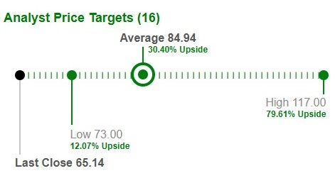 Based on short-term price targets offered by 16 analysts, the Zacks average price target is $84.94 per share. The average suggests a potential 30.4% upside from the last closing price.