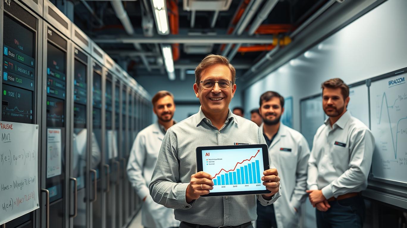Broadcom's AI revenue growth is driven by its leading AI XPUs and Ethernet networking portfolio. AI XPUs, such as the BCM57755, enable high-performance AI inference at the edge, while Ethernet networking solutions facilitate data transfer between AI systems. This combination has led to a 220% year-over-year increase in AI revenue, contributing significantly to Broadcom's record $30.1 billion in semiconductor revenue.