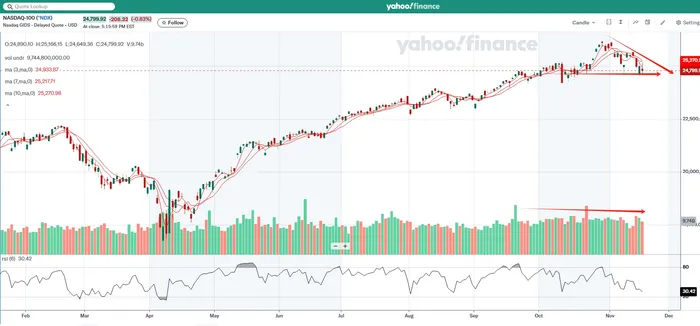 Some argue that the recent decline reflects a liquidity crisis. But Nasdaq 100 trading volume remains roughly in line with this year’s average. Buyers are stepping in on weakness, yet persistent selling pressure is dragging the market lower. Liquidity conditions are still healthy for now, but the bearish chart structure means liquidity could deteriorate quickly if buying momentum fades and more participants begin selling. This can easily snowball into a volume spike similar to the April crash, when President Trump’s reciprocal tariff announcement shocked the market.